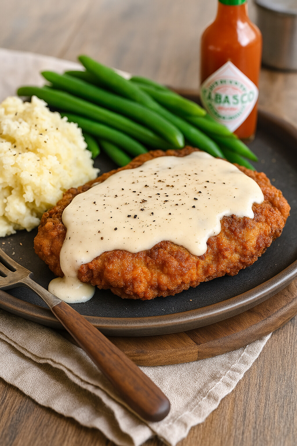 - Serve: Retrieve the warm steaks from the oven. Place one steak on each plate and generously ladle the hot cream gravy over the top. Serve immediately.
