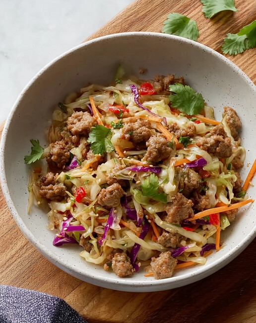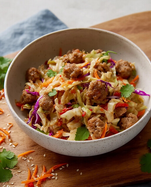 Okay, confession time: I love the idea of complicated, impressive meals, but on a busy Tuesday night? Forget about it! That’s how this Savory Sausage & Slaw Skillet came to be. It started as a craving for those takeout egg roll flavors, minus the wrapper and the deep fryer. After a little experimenting (and maybe accidentally adding way more ginger than planned the first time – spoiler: it was delicious!), this dish became an absolute staple in my kitchen.