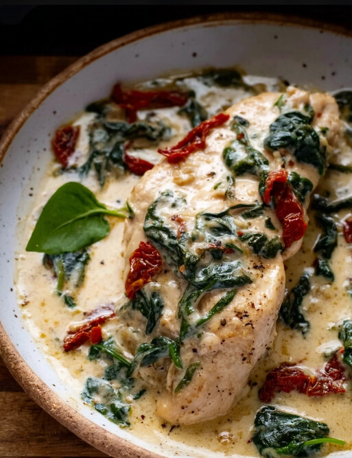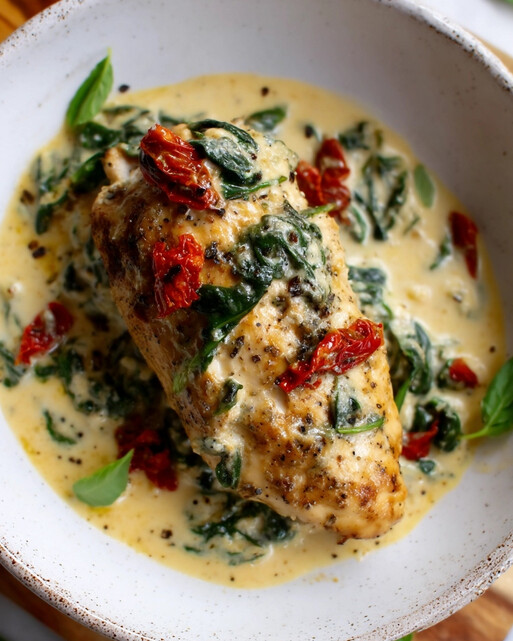 - Serve the chicken breasts whole with a generous amount of the creamy sun-dried tomato and spinach sauce spooned over the top.