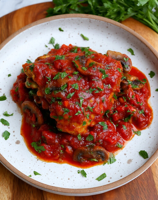 - Serve hot, making sure to spoon plenty of that rustic, chunky sauce over the chicken. Garnish with fresh parsley and Parmesan, if you like!