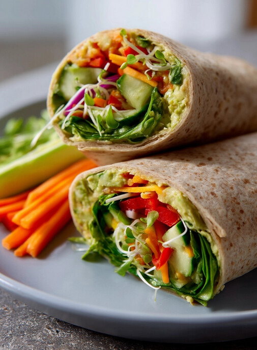 This isn’t just any wrap; it’s a vibrant, satisfying meal that’s packed with fresh ingredients and wholesome goodness. Think creamy avocado and flavorful hummus binding together a colorful array of crisp vegetables, all bundled in a soft whole-wheat tortilla. It’s pretty much happiness, rolled up.