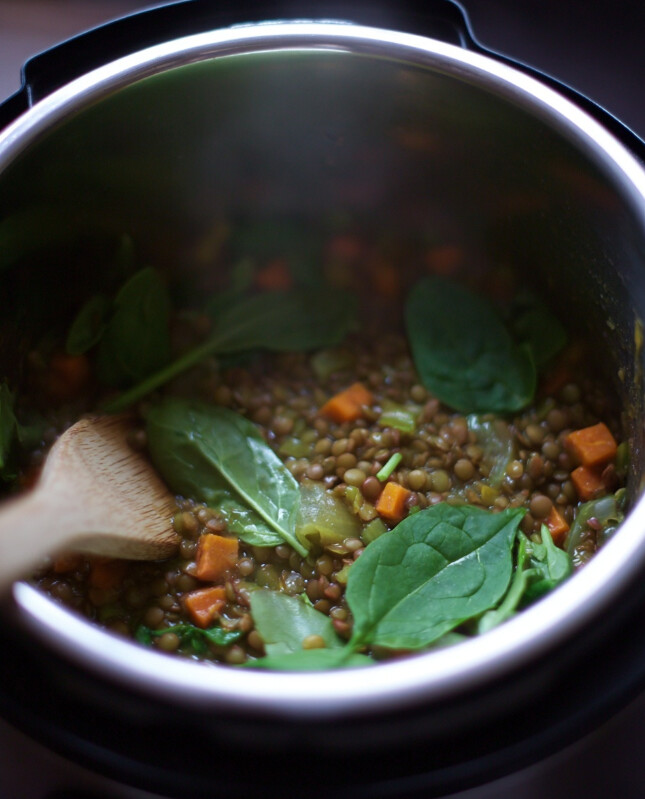 - Add Spinach: After the lentils are tender, turn off the heat. Add the fresh spinach to the hot soup. Stir for about a minute, or until the spinach has wilted completely.