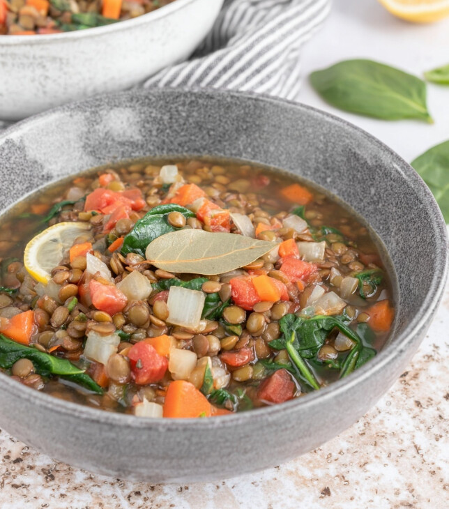 One Pot Garden Lentil Soup with Spinach and Lemon