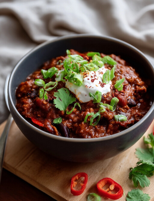 5. Serve it Up Hot and Delicious!: After its long, luxurious simmer, your chili is ready! Give it a final taste (carefully, it’s hot!). Give it a final taste (carefully, it’s hot!). With the added seasonings including salt, it should be richly flavored and ready to enjoy. Ladle generous portions into bowls (about 1 cup per serving is a good start). Now, unleash your creativity with those optional toppings!