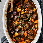 - About 2 ½ lbs 1.1 kg beef chuck, trimmed and cut into 1 ½-inch cubes
