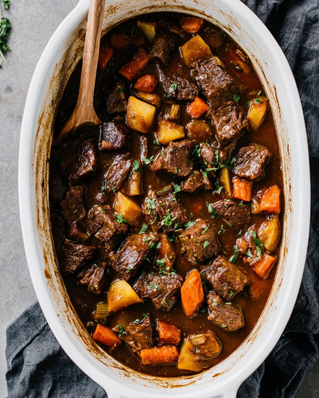 - Final Simmer : Replace the lid and continue to cook until the vegetables are fork-tender and the beef is falling apart, about another 60-75 minutes. Taste and adjust seasoning with more salt and pepper if needed. For a naturally thicker gravy, you can remove the lid for the final 15-20 minutes of cooking to allow the sauce to reduce.
