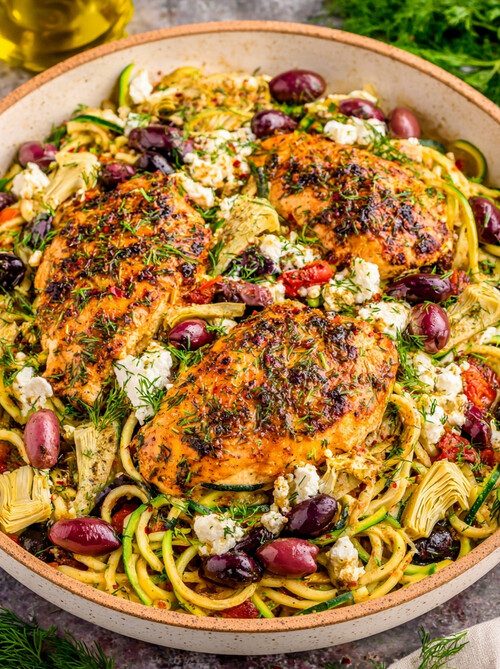 - Smart Salty Ingredients: A little bit of feta and Kalamata olives goes a long way! By rinsing them first, we reduce the sodium significantly but keep that briny, savory punch that defines a low sodium mediterranean chicken recipe.