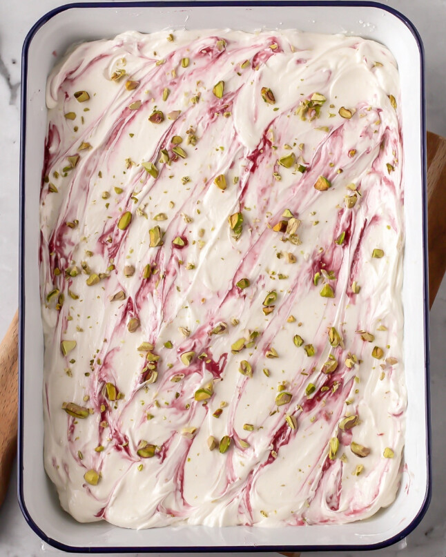 - Sprinkle the chopped, toasted pistachios evenly over the top.