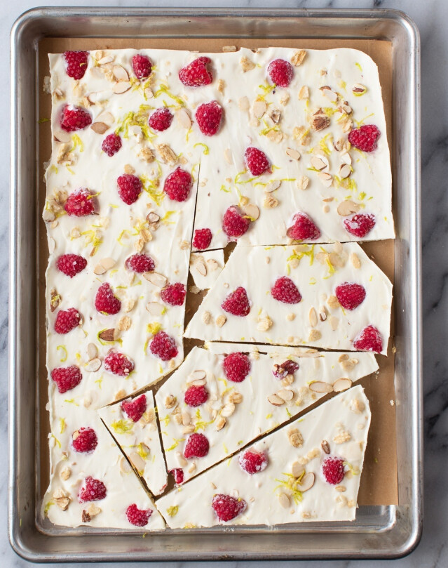 lemon yogurt barkbut want to try something new, swap the raspberries for chopped strawberries or blueberries. You could even use lime instead of lemon for a different citrusy kick! - Make it Nut-Free: For a nut-free version, simply leave out the almonds or replace them with toasted coconut flakes, pumpkin seeds, or hemp hearts.