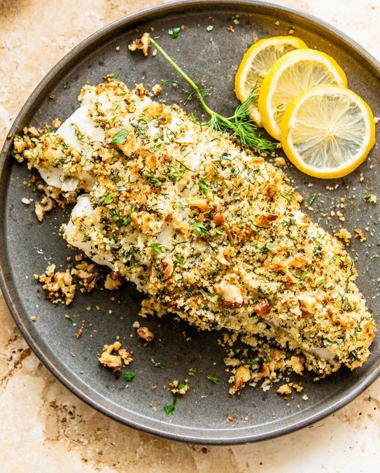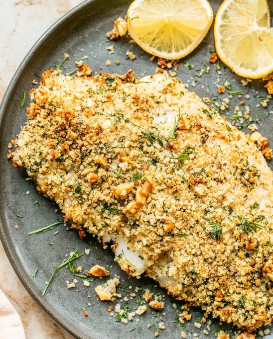 - Broil for a Golden Finish: Switch the oven setting to a high broil. Continue to cook the fish for an additional 2 to 3 minutes, until the topping is a deep golden brown and crisp. The fish is fully cooked when it flakes easily and registers 145°F (63°C) internally. Watch the crust closely while broiling; it may turn golden within 60–90 seconds depending on the oven, to prevent burning.