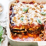 Unveil the charm of this Mediterranean eggplant recipe, a sumptuous casserole where silky roasted eggplant meets a savory lentil ragu, crowned with a nutty crumble for that perfect crunch. It’s a heartwarming, oven-baked delight that’s as kind to your well-being as it is to your cravings, ready to star in your repertoire of effortless, feel-good feasts.