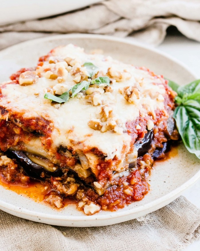 Honestly, this healthy baked eggplant casserole is a wonderful one-pan meal all on its own! If you want to round it out, a simple arugula salad with a lemon vinaigrette or some crusty whole-grain bread for dipping in the extra sauce would be perfect.
