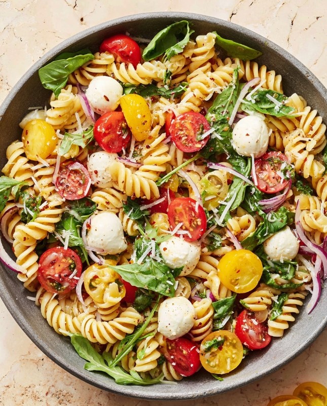 Everyone loves a classic Caprese salad, right? The simple, perfect harmony of juicy tomatoes, fresh mozzarella, and fragrant basil is the undisputed taste of summer. I’ve always wondered how to take that perfect flavor trio and transform it into a truly satisfying meal. This recipe is the delicious answer. We take all the beloved elements of a Caprese and build on them, adding hearty whole-wheat pasta, peppery arugula, and a zesty lemon-balsamic dressing. This Mediterranean pasta salad recipe is the evolution of a classic—familiar enough to be comforting, but exciting enough to feel brand new.