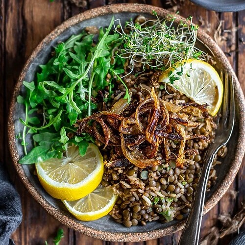 The Coziest Mediterranean Lentil and Rice Recipe (with Crispy Leeks!)